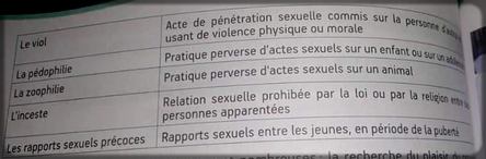 Parce que de nos jours, il y a des enfants de dix ans qui font déjà la classe de Cinquième ! Et pourtant dans le manuel de science de la classe de Cinquième qu’on vient de mettre au programme, on retrouve des mots compliqués comme sodomie, fellation, cunnilingus, etc.
