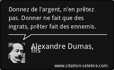 Je ne vais plus jamais prêter mon argent aux gens ! Car quand ils viennent pour demander ils sont très-très gentils et courtois, mais quand toi tu réclames ton argent ils vont t’insulter avec tous les noms d’oiseaux.
